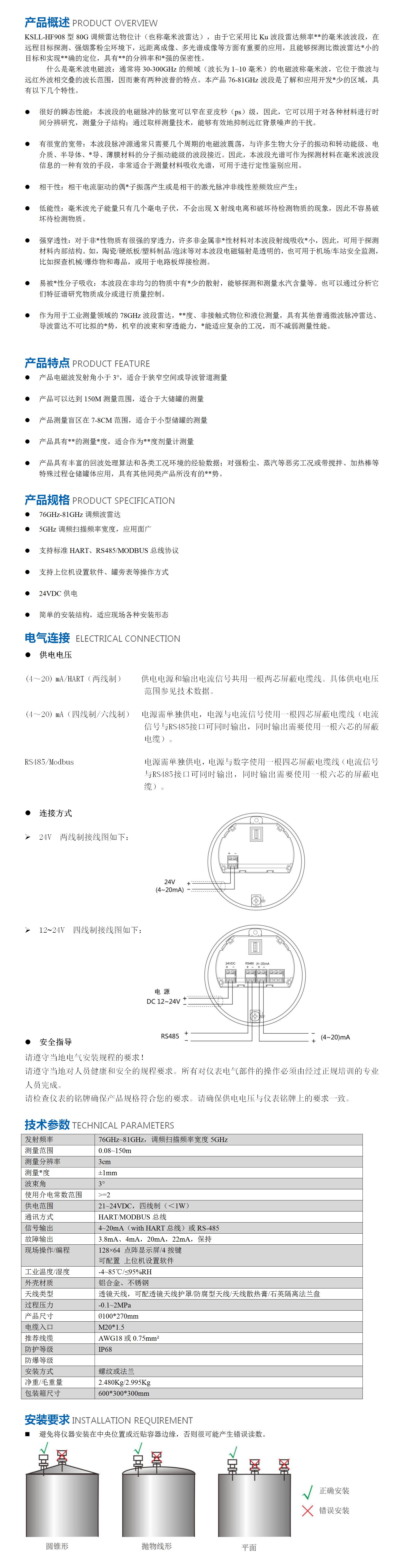 KSLL-HF906型 80G調(diào)頻雷達物位計